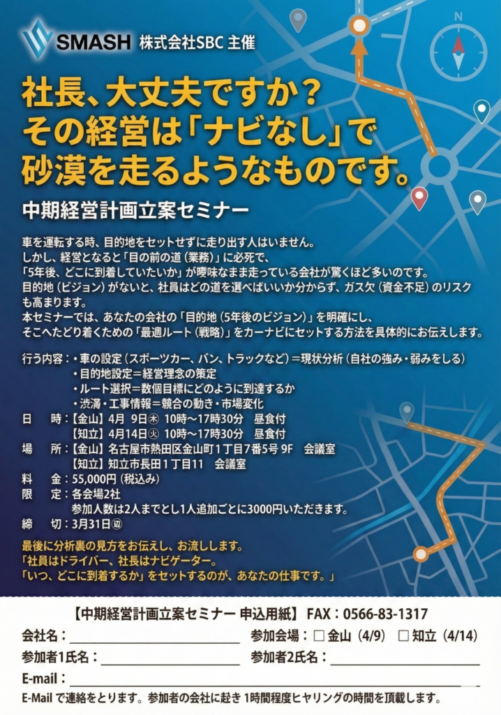 SBCトップ » お知らせ » 【3月開催!】中期経営計画立案セミナー開催のご案内