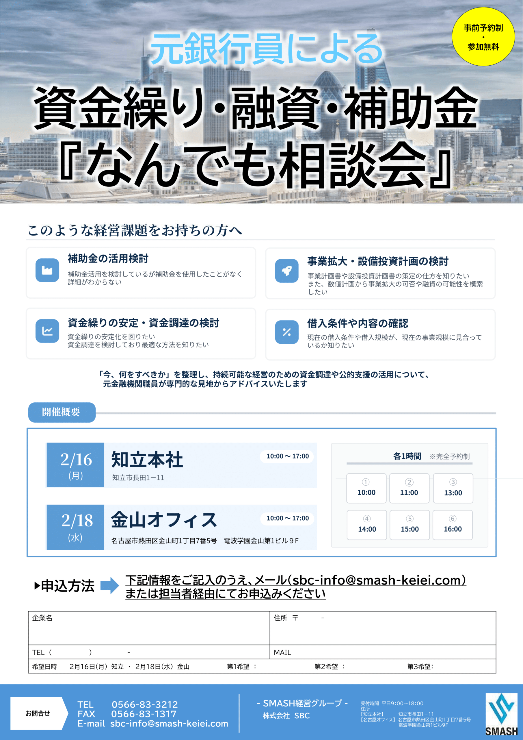 SBCトップ » お知らせ » 【2月開催!】資金繰り・融資・補助金『なんでも相談会』のご案内